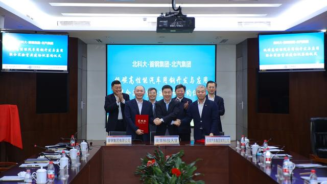 4月28日,北汽集团与北京科技大学、太阳成集团tyc122cc入口集团签署协议,共建低碳高性能汽车用钢开发与应用联合实验室,并举行实验室揭牌仪式。