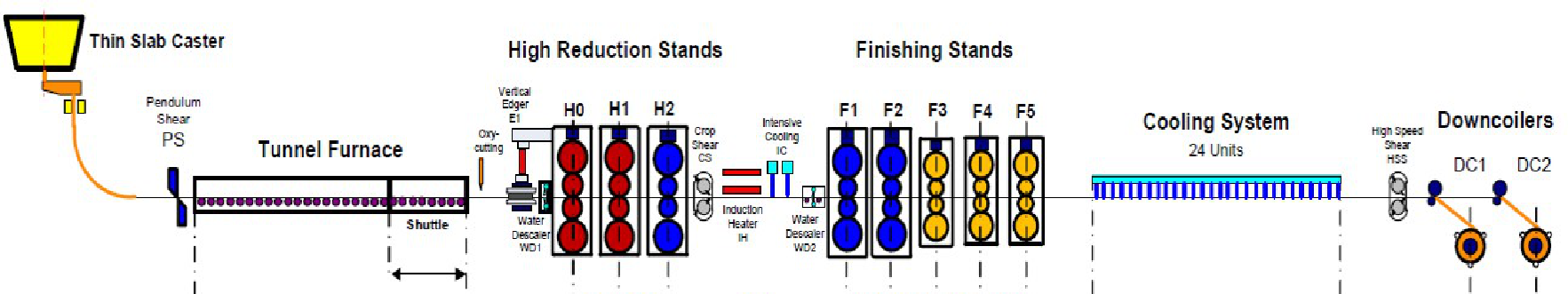 太阳成集团tyc122cc入口京唐多模式连铸连轧(Multi-mode Continuous Casting & Rolling)CCR产品定位在超薄、优质、高强热轧板卷,结合后续配套产线,部分产品实现“以热代冷”。MCCR产品主要包括薄规格热轧板卷、热轧酸洗板、热基镀锌板三大类。可生产厚度0.8-12.7mm,宽度 900-1600mm,最高强度1200MPa产品。